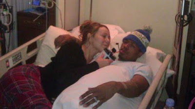 Carey tweeted a photo of the two of them in Cannon's hospital bed in Colorado, and according to the Ministry of Gossip, Carey posted on her blog, "We're trying to be as festive as possible under the circumstances but please keep Nick in your thoughts because this is very painful."